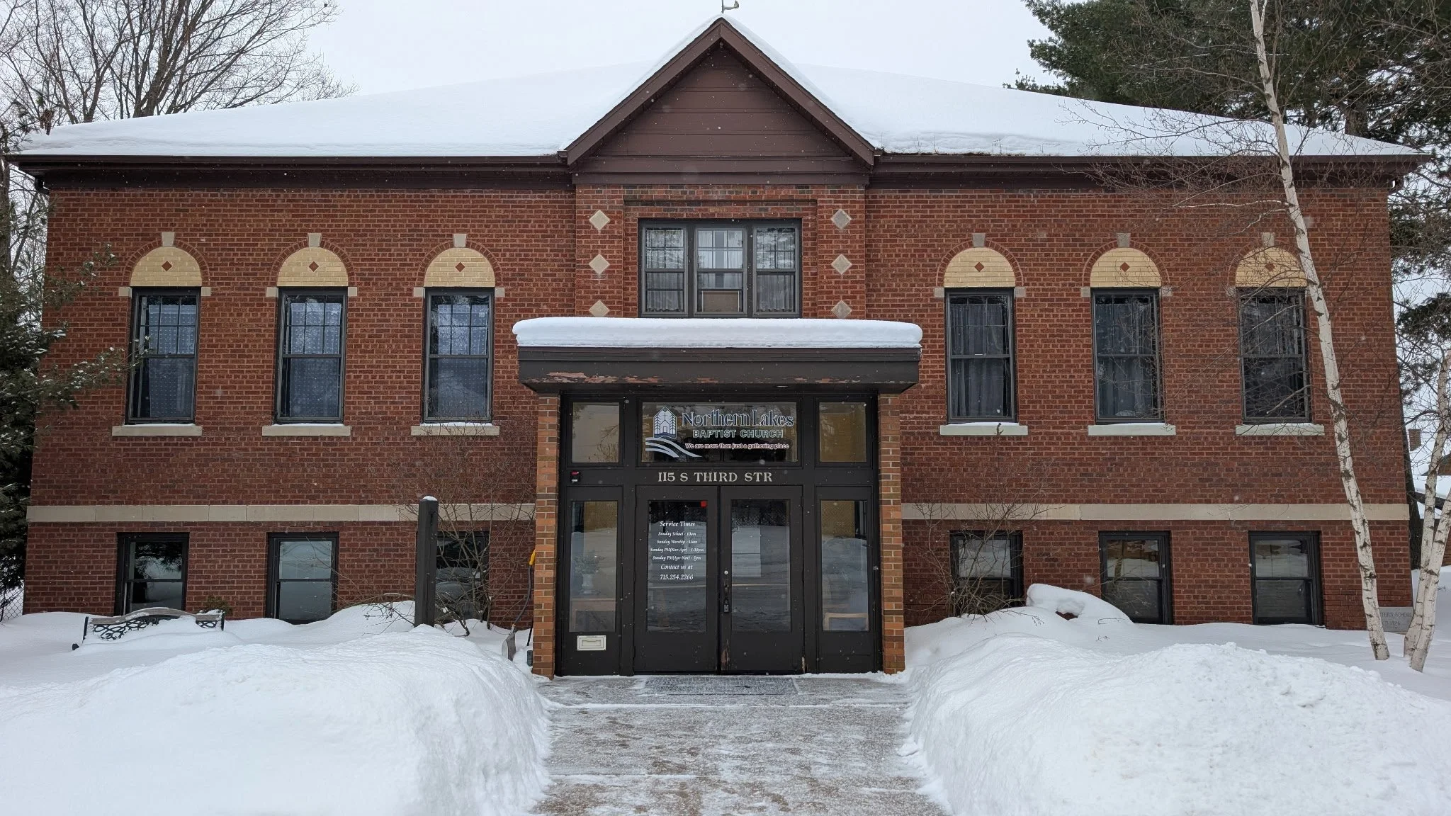 NLBC's Services are at held every Sunday and Wednesday near downtown Eagle River, Wisconsin at 115 S Third St in between Wall and E Division St. We are located in a red brick building. Parking is street parking. Handicap parking is available in the back and can use back door to enter.